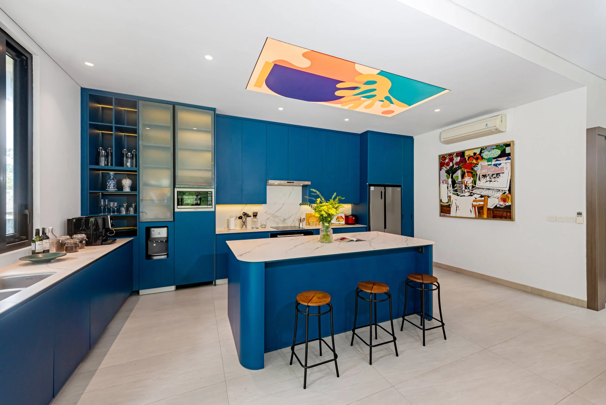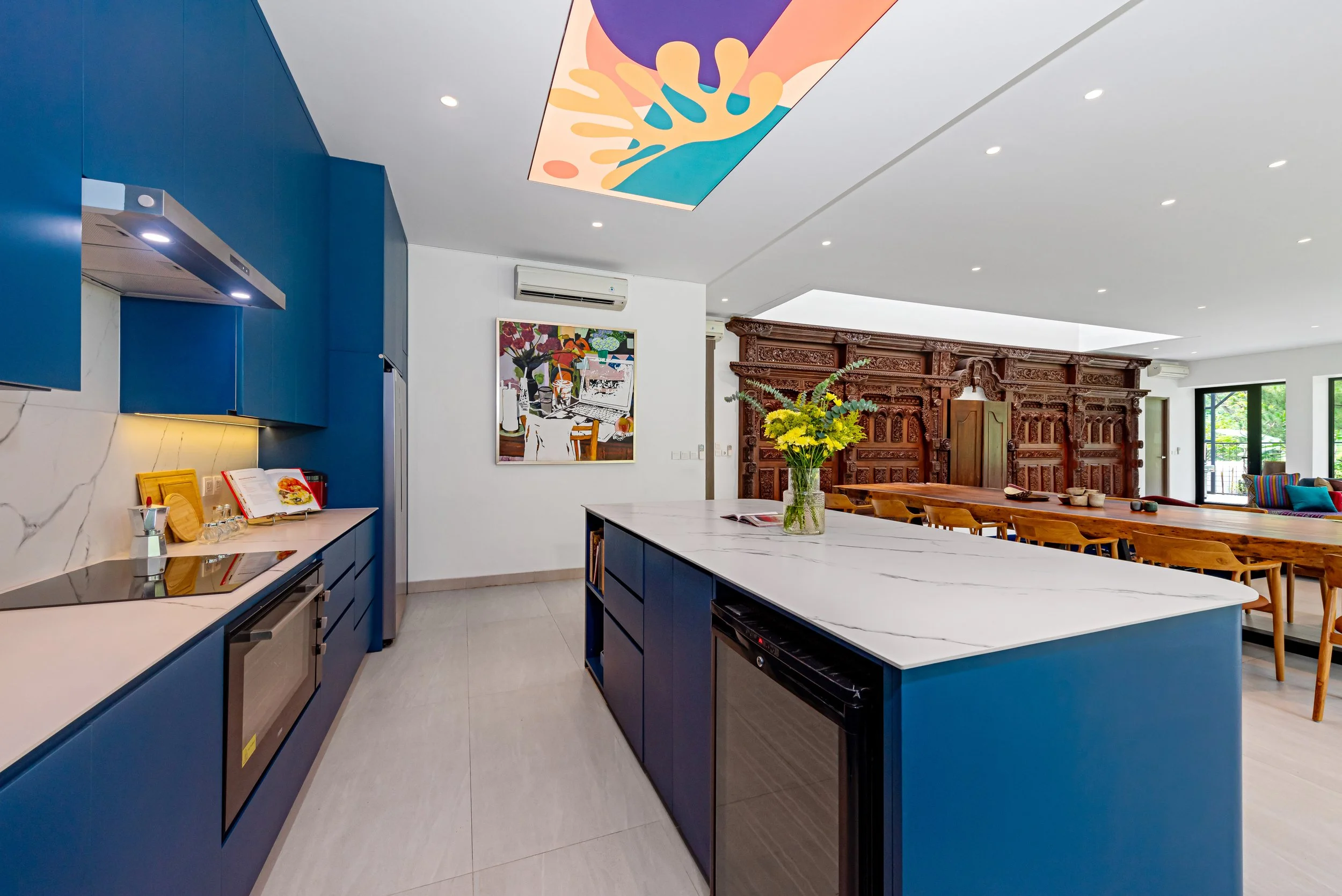 For outdoor enthusiasts, the grill area provides an excellent spot to gather with family and friends. Whether it’s a barbecue feast or simple grilled snacks, the space is designed to elevate your dining experience while enjoying the serene surroundings. Together, the Blue Kitchen and grill area ensure a memorable culinary journey during your stay.