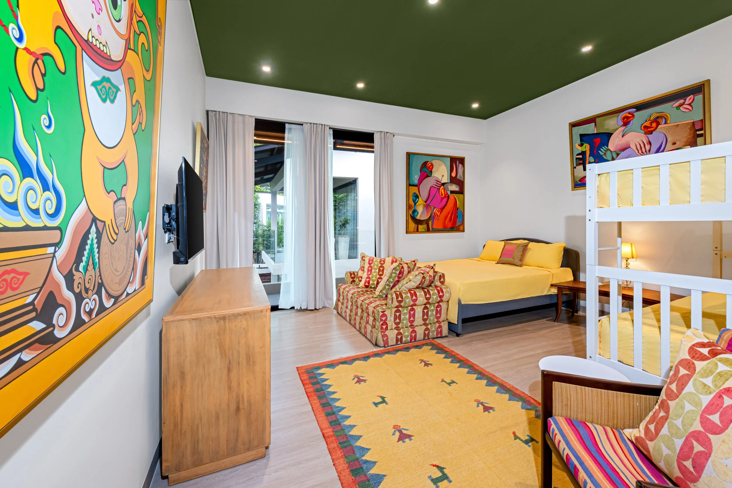 Hale Sentul’s interior is a harmonious blend of modern comfort and artistic expression. The villa features exquisite artworks from ISA Art Gallery @isaart.id, carefully selected to create an inspiring atmosphere. Guests can also collaborate with @isaart.dsg for tailored design and art consultations, bringing unique creative visions to life.
